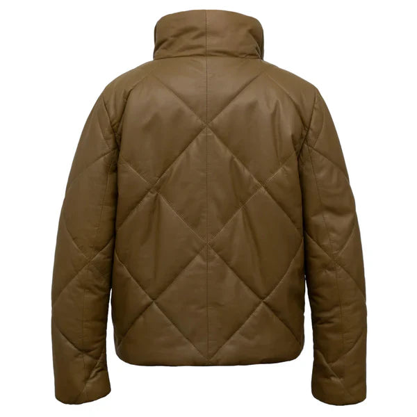 Women's Khaki Quilted Leather Stylish Jacket